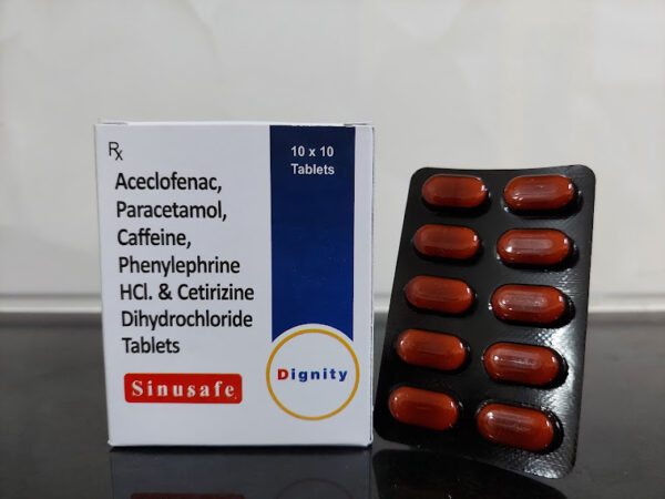 Aceclofenac 100mg+Paracetamol325mg+Cetrizine DiHCL 10mg+Caffeine ( Anhydrous ) 25mg + Phenylephrine HCL 5mg